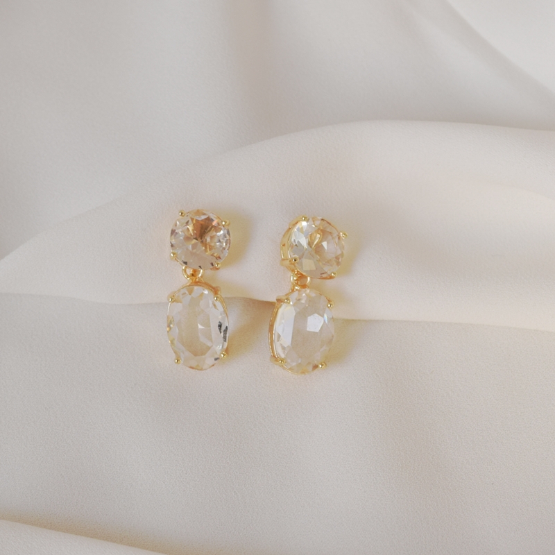 Brinco de pressão com banho de ouro, composto por base redonda em cristal que ilumina o rosto com delicadeza. O destaque fica por conta do pendente em formato oval de cristal, que adiciona movimento e brilho sofisticado à peça. Elegante e confortável, é ideal para quem não possui furo na orelha e busca um acessório versátil para ocasiões especiais ou para elevar produções do dia a dia com um toque refinado.