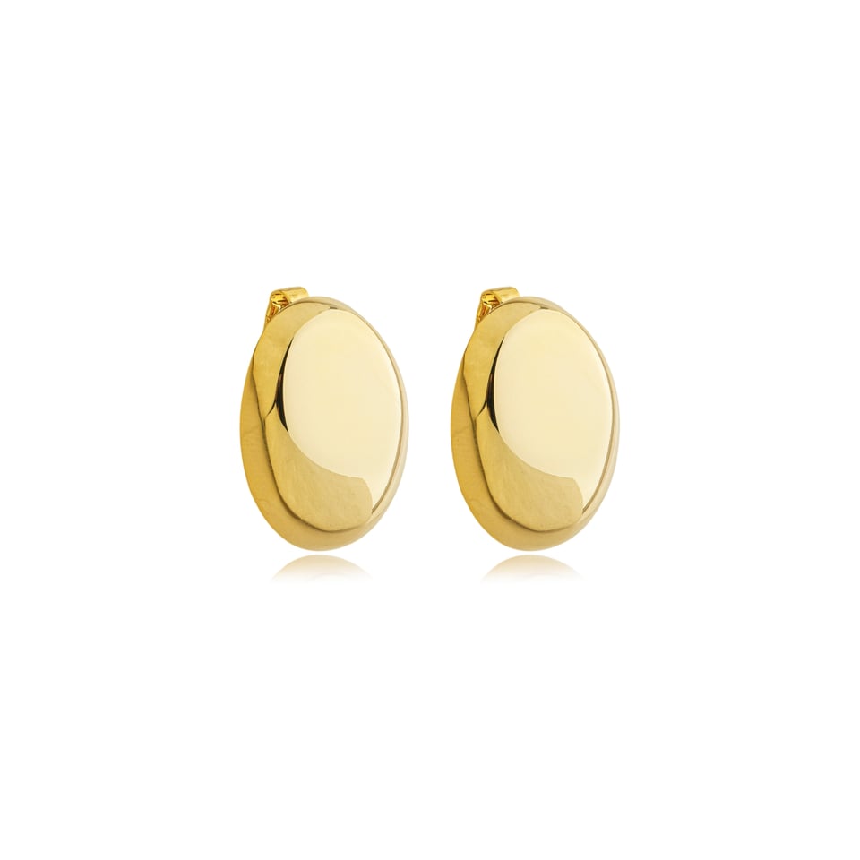 Brinco de pressão banho de ouro com design oval no metal liso polido,
