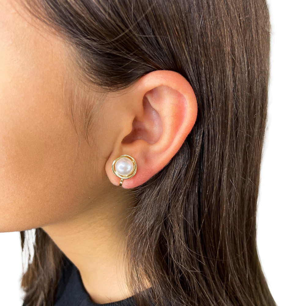 Brinco de pressão com banho de ouro, design sofisticado em metal liso com detalhe em pérola sintética central, que confere elegância e brilho atemporal à peça. Semijoia confortável e prática, ideal para quem não possui furo na orelha. Perfeito para compor looks clássicos e refinados, do dia a dia a ocasiões especiais.