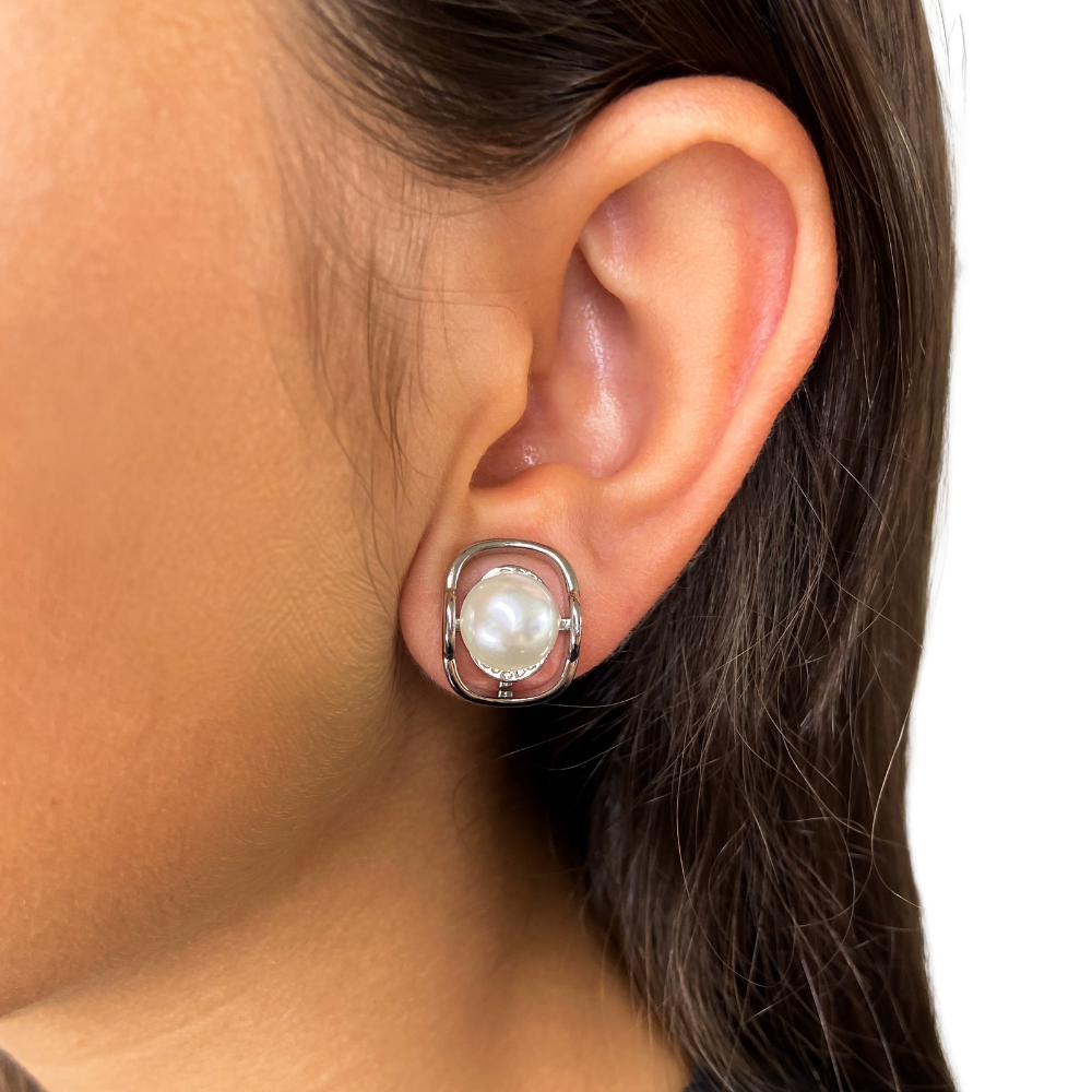Brinco de pressão com banho de ródio, design sofisticado em metal liso com detalhe em pérola sintética central, que confere elegância e brilho atemporal à peça. Semijoia confortável e prática, ideal para quem não possui furo na orelha. Perfeito para compor looks clássicos e refinados, do dia a dia a ocasiões especiais.