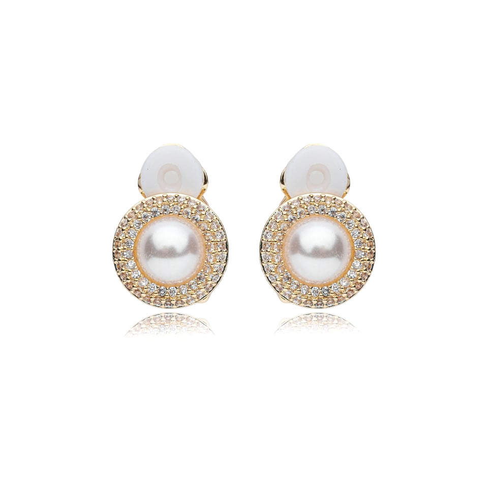 Brinco pressão pérola zircônia ouro semijoia 24k16002