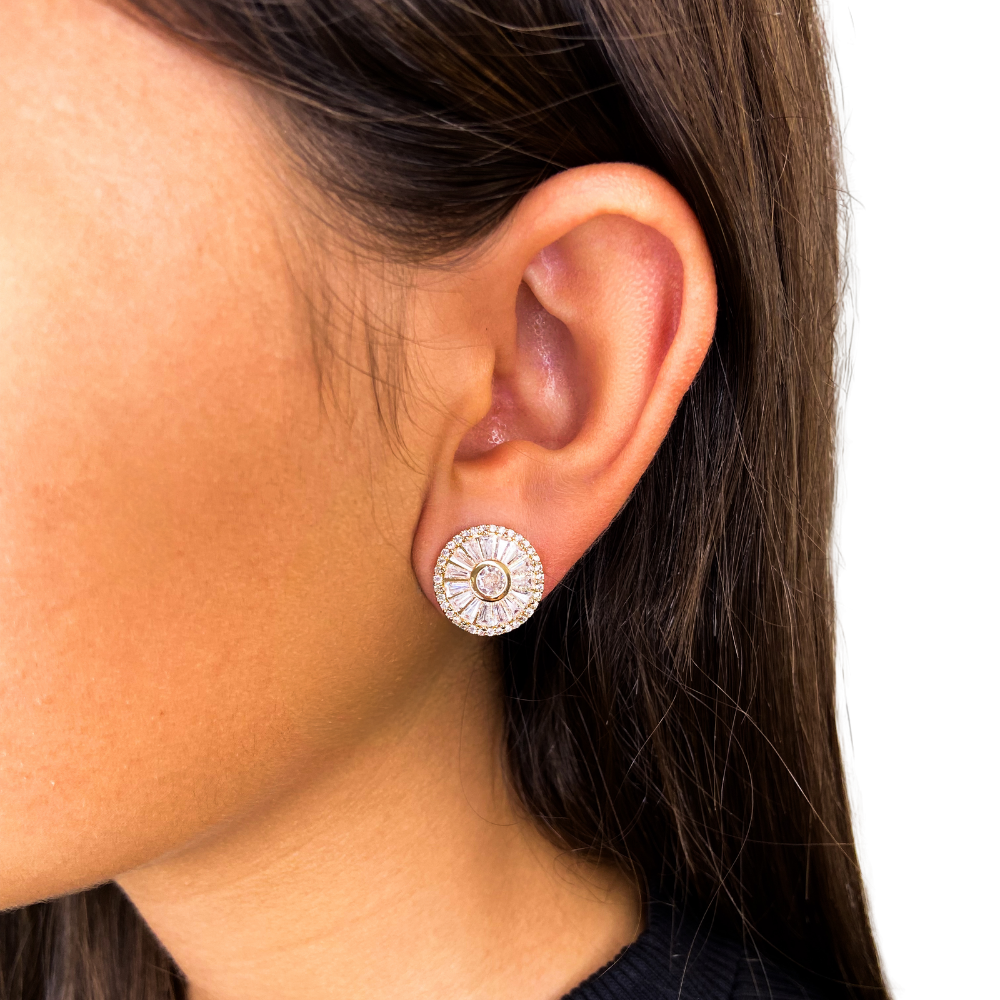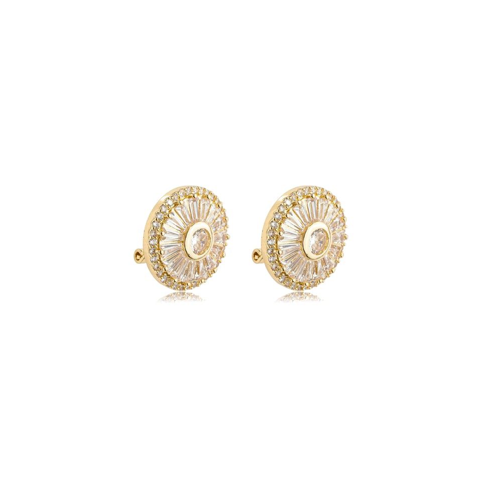 Brinco Pressão Pizza com banho de ouro e cravação de micro zircônias na cor branco (cristal), que garantem brilho intenso e acabamento sofisticado. Semijoia confortável e prática, ideal para quem não possui furo na orelha.