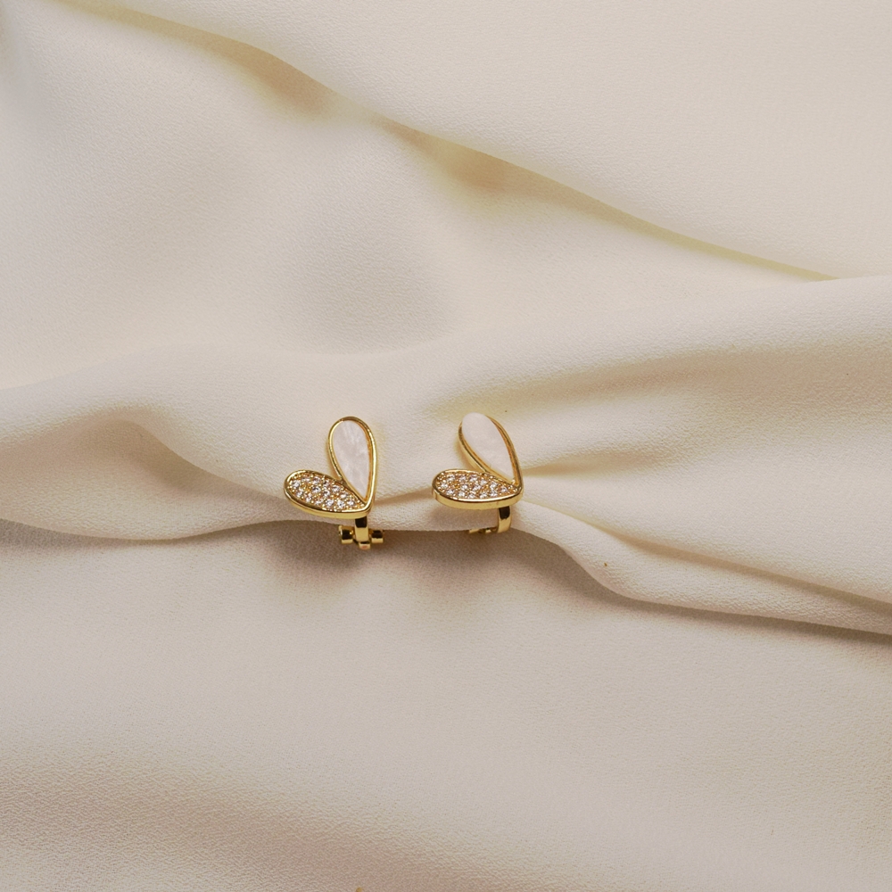 O brinco de pressão em formato de coração com aplicação de madrepérola é uma semijoia delicada que une romantismo e sofisticação em cada detalhe. Seu design diferenciado traz um lado do coração em madrepérola, com brilho suave e elegante, e o outro lado cravejado com micro zircônias na cor branca (cristal), criando um contraste harmonioso e moderno.