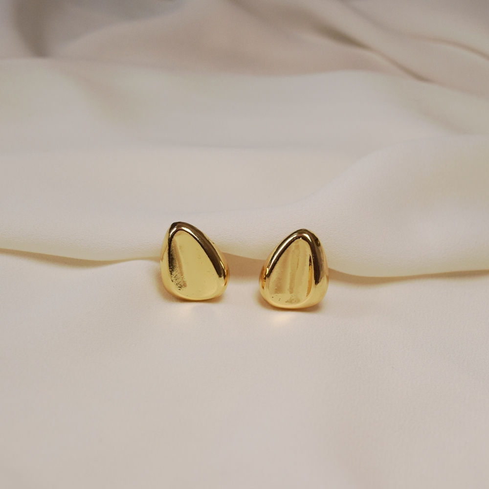 O brinco de pressão com design orgânico é uma semijoia moderna que valoriza formas fluidas e naturais em um acabamento sofisticado. Com banho de ouro de alta qualidade, a peça em metal liso destaca-se pelo brilho elegante e pelo visual minimalista, perfeito para quem busca um acessório contemporâneo e versátil.