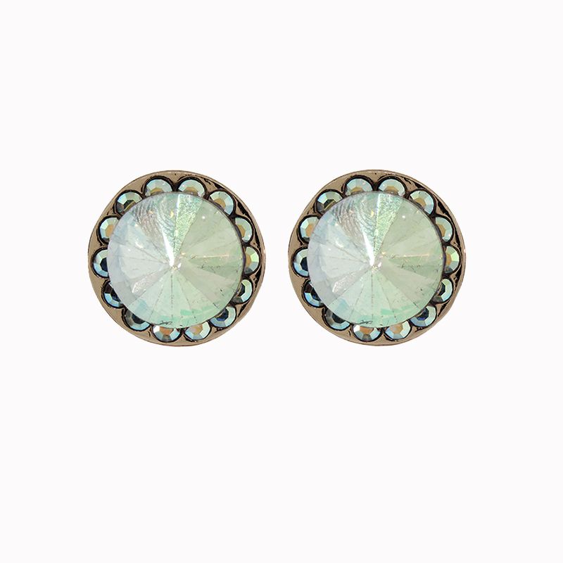 Brinco banho dourado com cristal ponteagudo na cor boreal (furtacor)