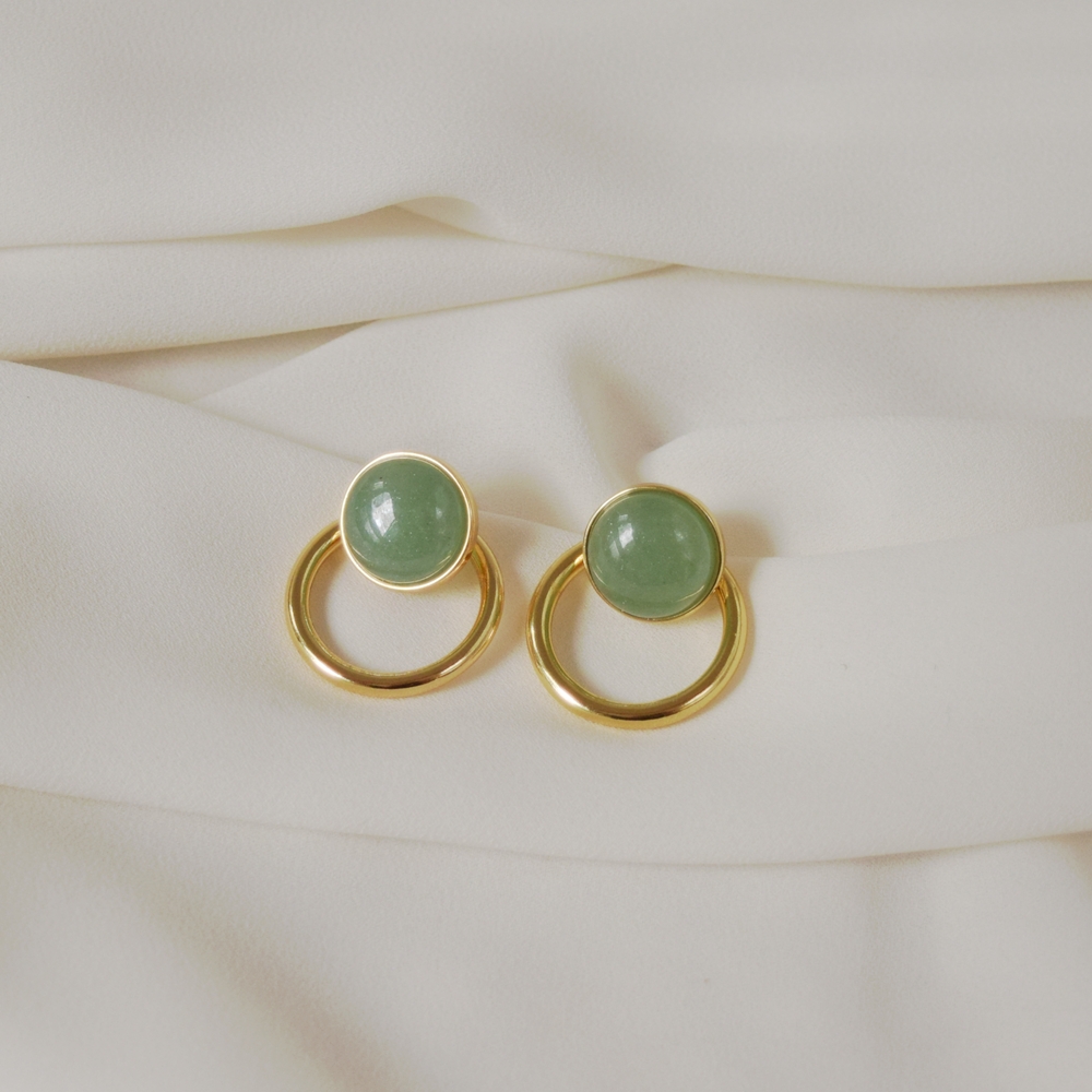 Versátil e elegante, o brinco 2 em 1 é uma semijoia que combina design contemporâneo e a beleza das pedras naturais. A peça possui base com pedra natural de Quartzo verde perolado em formato redondo, que se destaca pelo brilho suave e pela tonalidade sofisticada.
