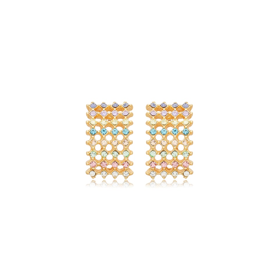 Brinco banho de ouro com aplicações de cristais coloridos.