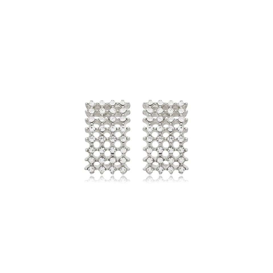 Brinco banho de ródio com aplicações de cristais na cor branco (cristal).
