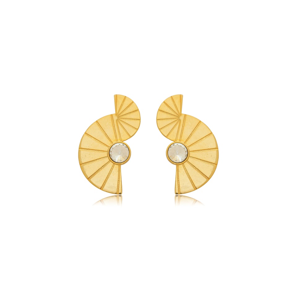 Brinco banho dourado com aplicação de cristal redondo na cor branco (cristal).
