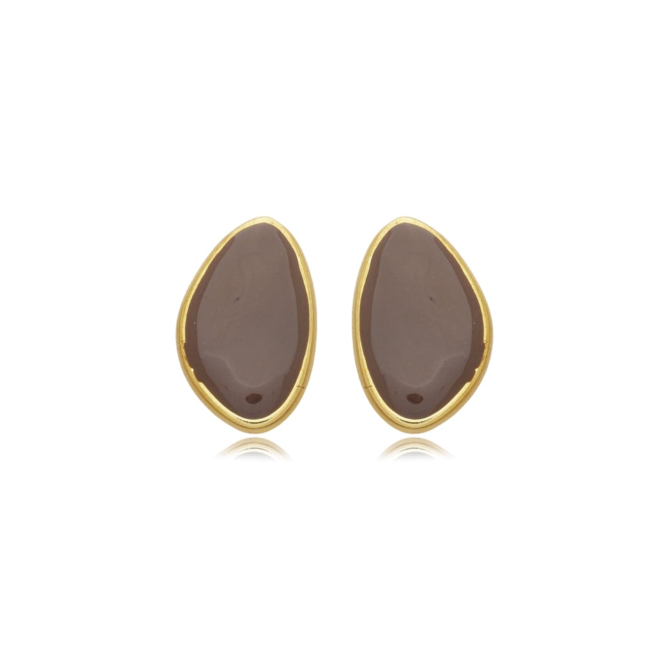 Brinco banho de ouro vintage com design orgânico e detalhe na resina na cor marrom cacau.