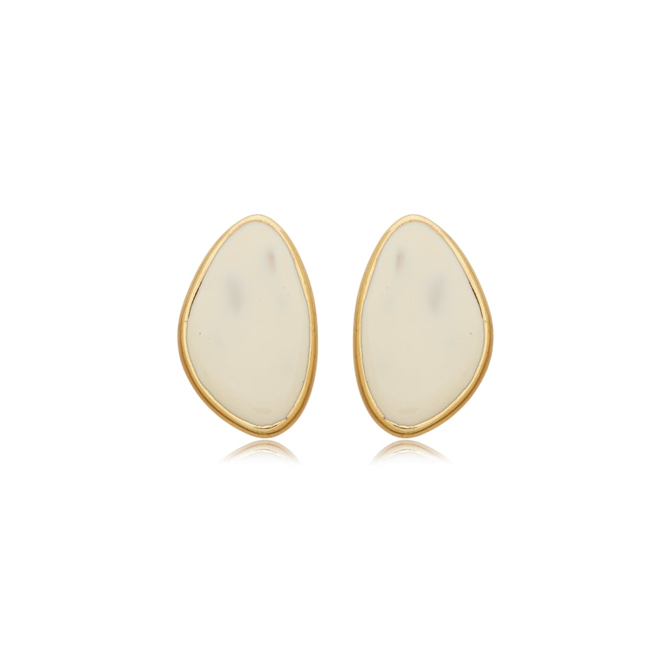 Brinco banho de ouro vintage com design orgânico e detalhe na resina na cor off white.