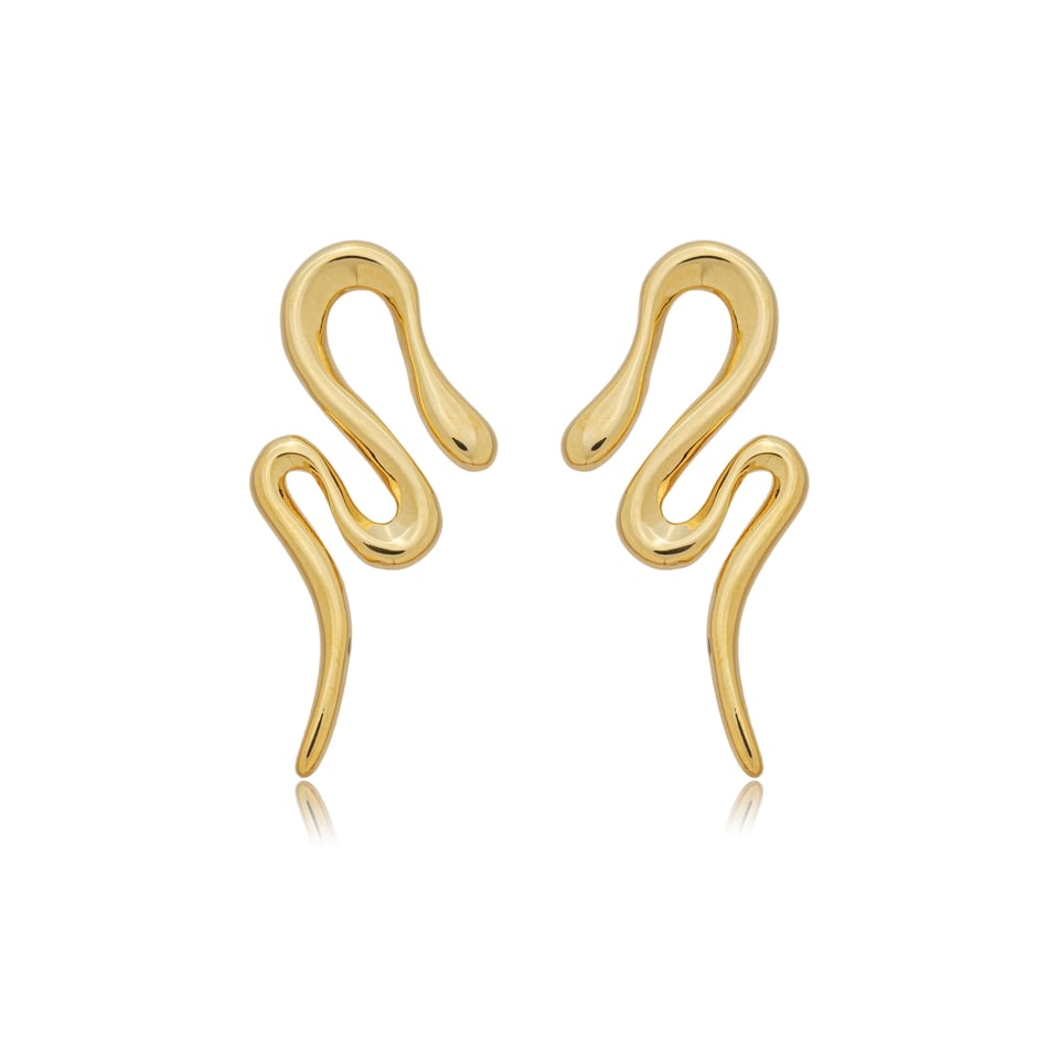 Brinco banhado a ouro com design de serpente no metal liso polido.