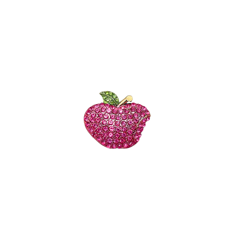Broche magnético banho prata envelhecido com cravação de cristais austríacos em tons de pink e verde.