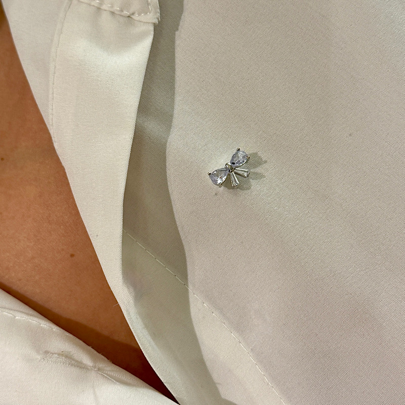 Broche banho de ródio com design de laço com cravação de zircônias na cor branco (cristal).