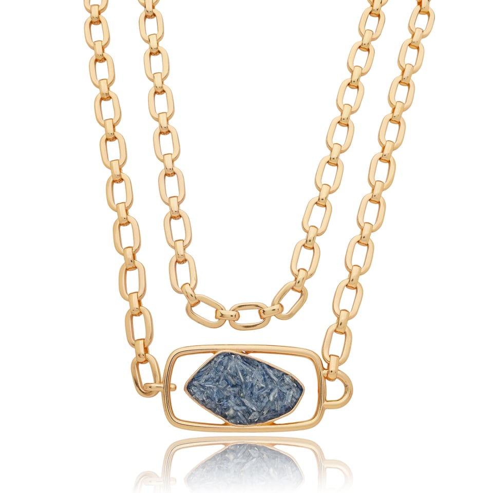 Cinto corrente banho de ouro com pedra natural cianita azul.