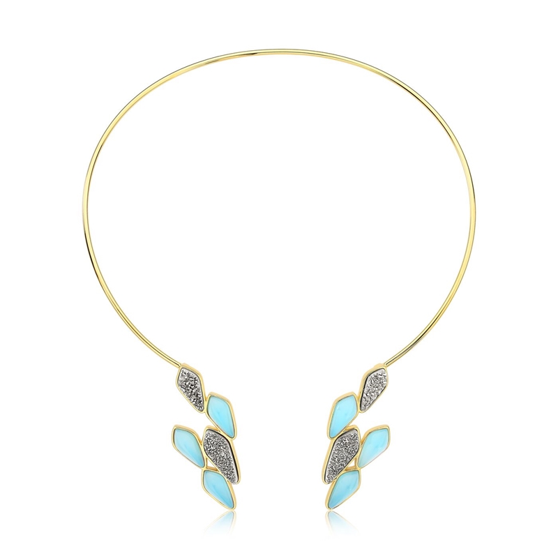 Colar aro Ayla pedras naturais ágata azul céu e drusa platina ouro semijoia