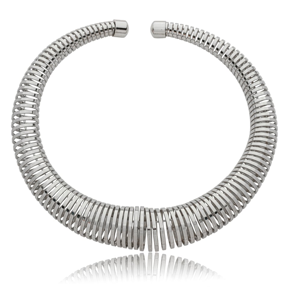 Colar aro flexível banhado a ródio com design de mola no metal liso.