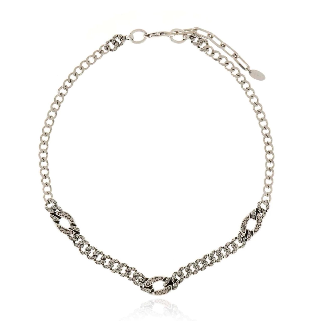 Colar choker banho de prata vintage de elos com aplicação de cristais.
