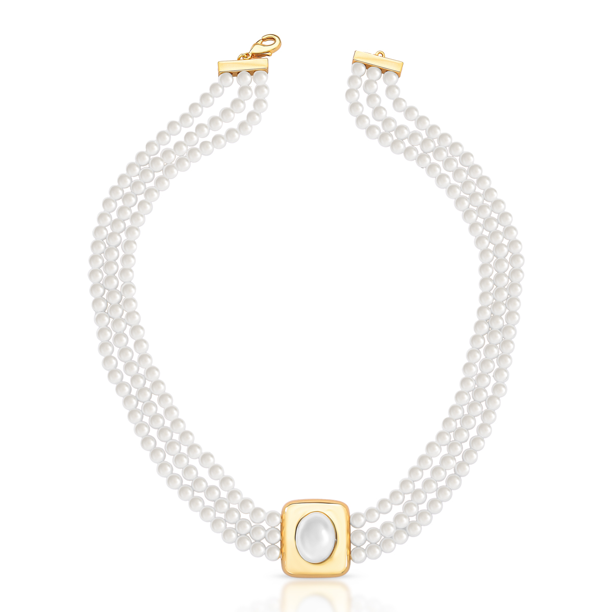 Colar Choker Pérolas Shell banhada a ouro, adornada com delicadas pérolas shell e pingente abaulado em formato retangular, garantindo um toque de sofisticação e elegância ao seu visual. Uma peça moderna e versátil, perfeita para composições cheias de estilo e personalidade.
