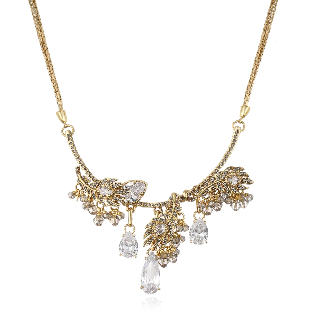 O Colar Pavão de Claudia Arbex destaca cristais inspirados nas cores vibrantes da plumagem do pavão, combinados ao elegante banho ouro vintage. Com lapidações especiais e design autoral, a peça une brilho, leveza e sofisticação.