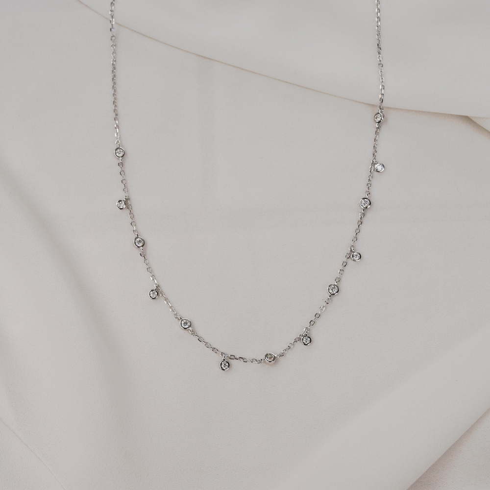O Colar Corrente em Prata 925 com Moissanites 0,7 ct é a escolha ideal para quem busca elegância discreta com brilho sofisticado. Seu design delicado valoriza a leveza da corrente, enquanto as moissanites proporcionam um efeito luminoso intenso, semelhante ao diamante, elevando qualquer produção com sutileza e requinte.