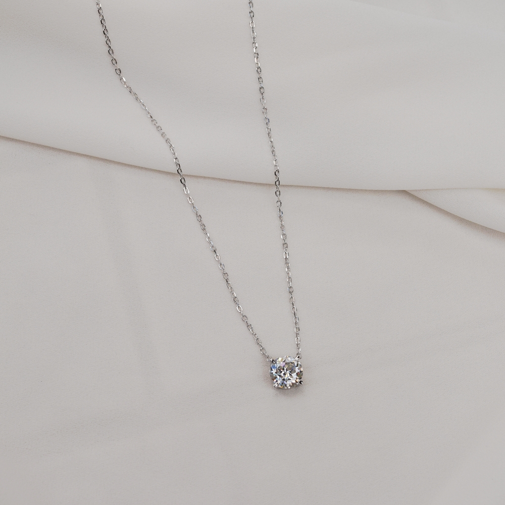 Colar corrente ponto de luz redondo moissanite 8 mm prata 925