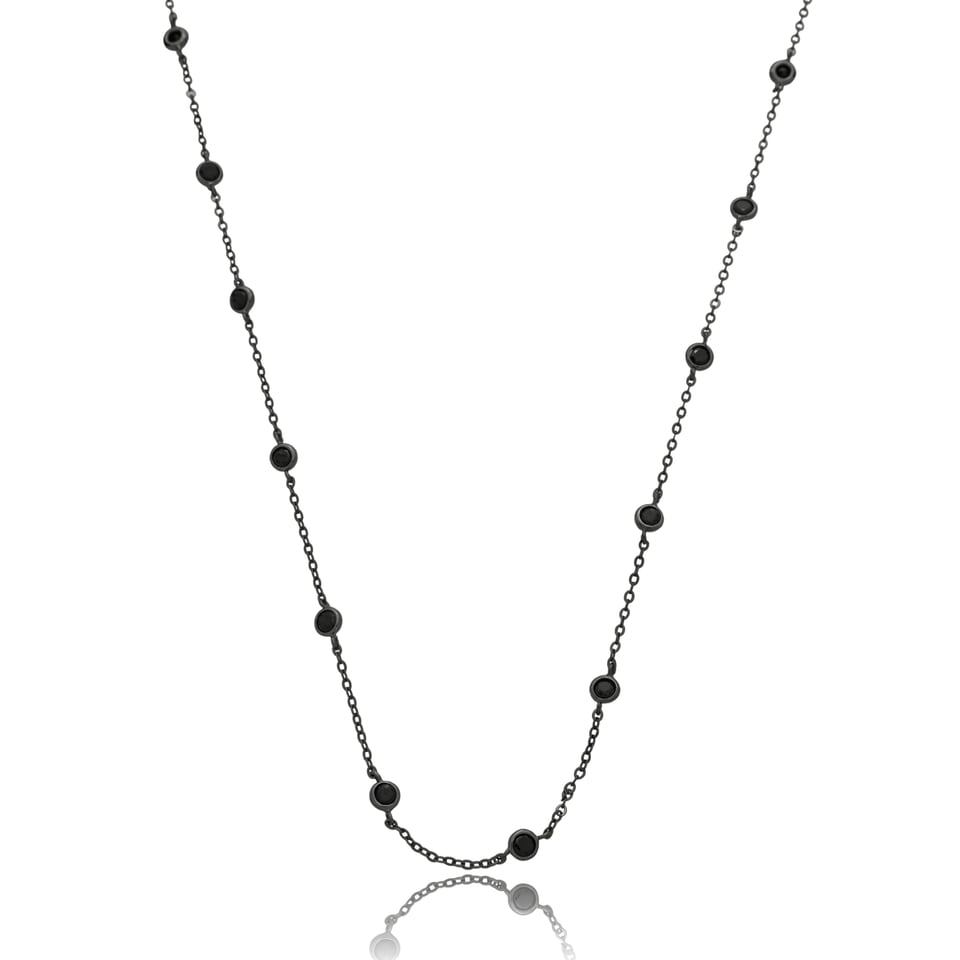 Colar curto banho de ródio negro com aplicação de cristais redondos na cor preto.