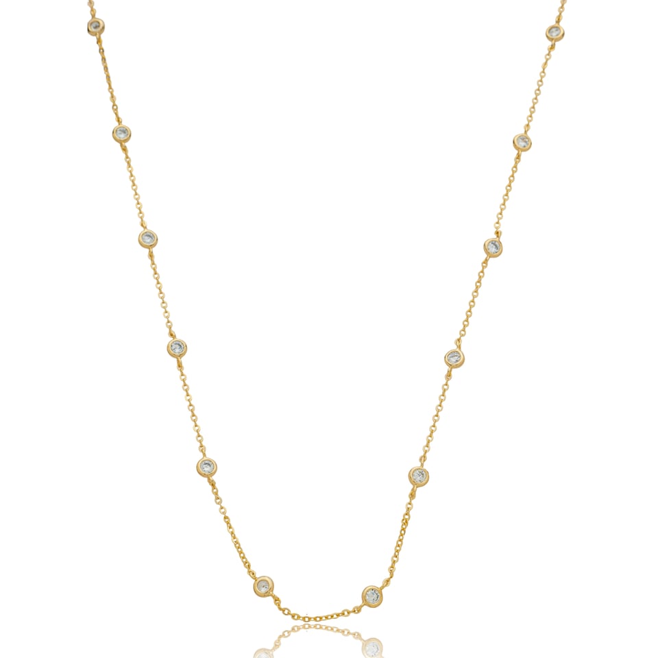 Colar curto banho de ouro com aplicação de cristais redondos na cor branco (cristal).