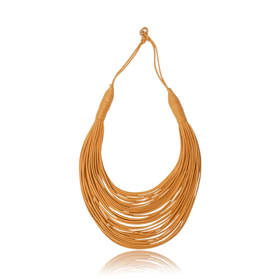 Colar médio produzido artesanalmente em fios 100% de algodão na cor caramelo.