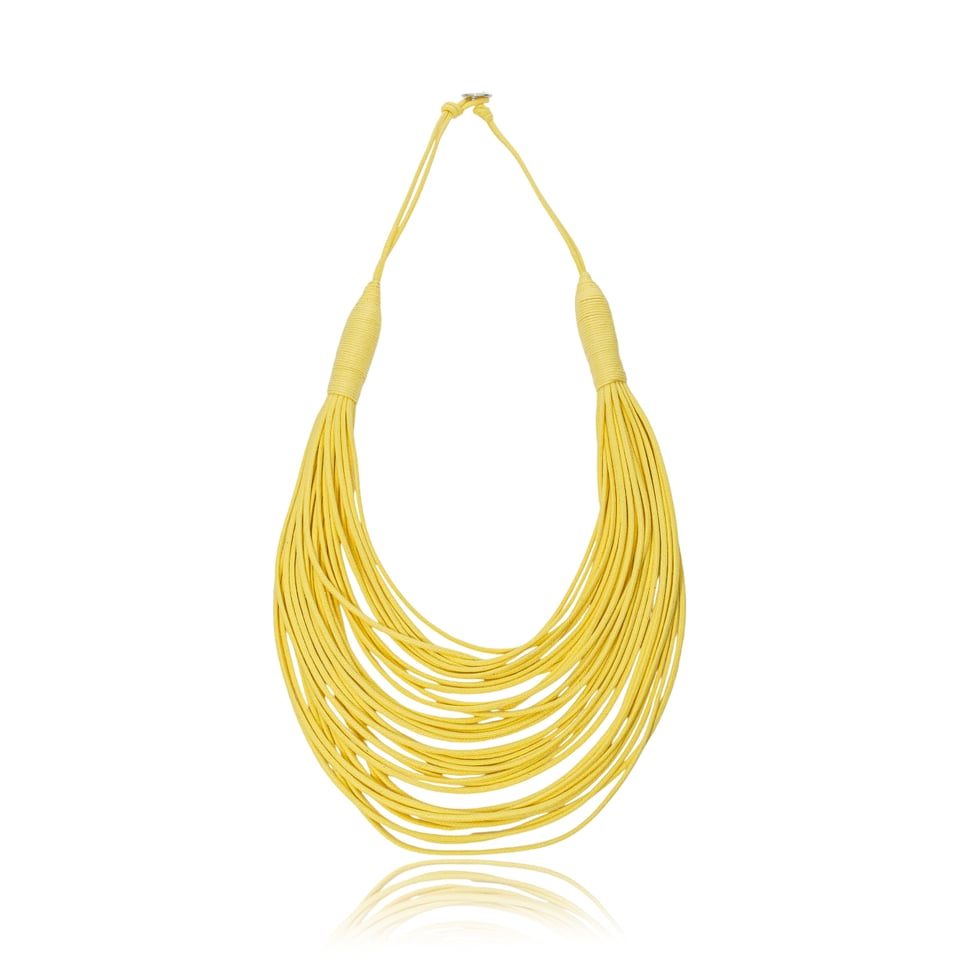 Colar médio produzido artesanalmente em fios 100% de algodão na cor amarelo.