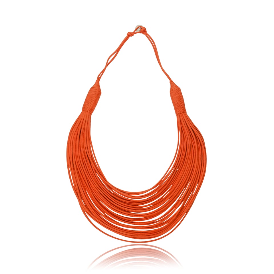 Colar médio produzido artesanalmente em fios 100% de algodão na cor laranja.
