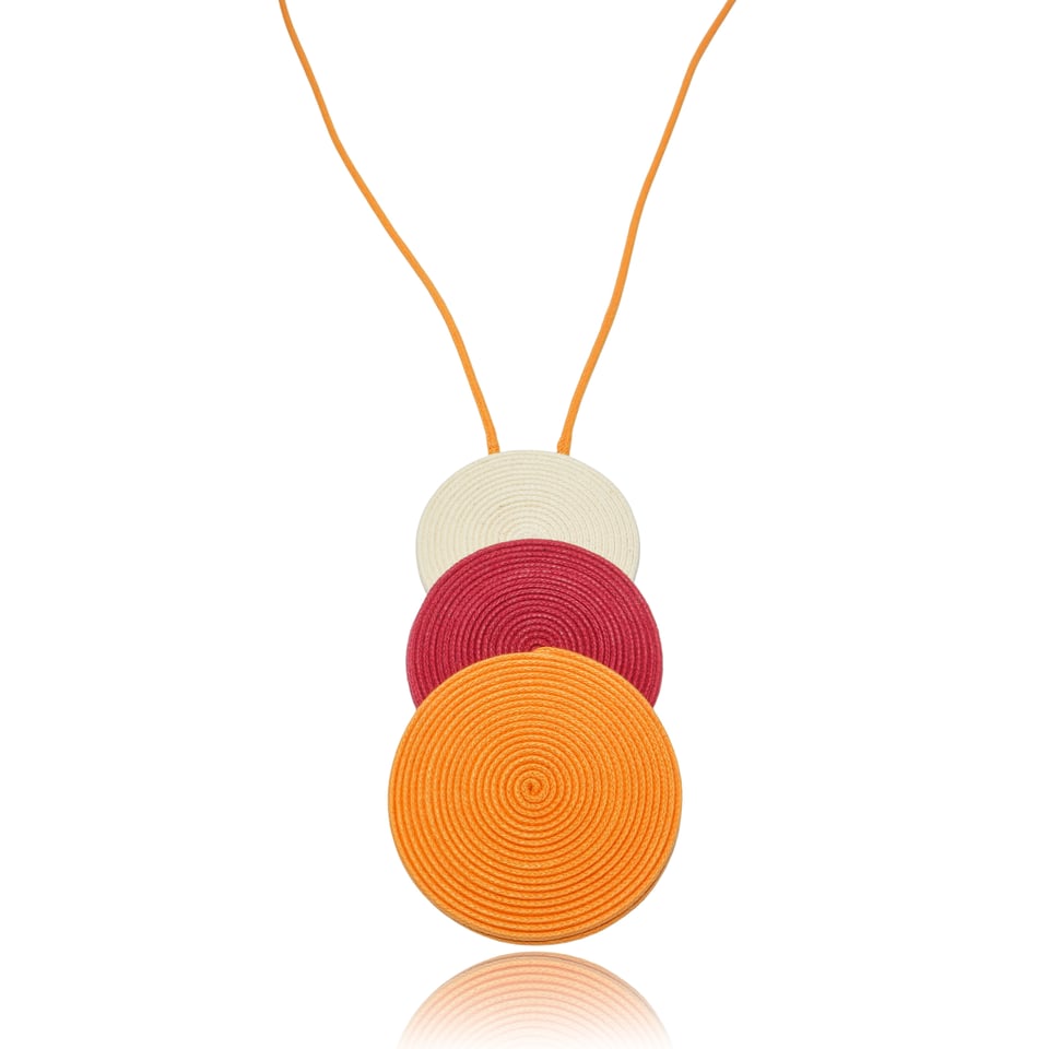 Colar longo produzido artesanalmente em fios 100% de algodão nas cores laranja, marsala e cru.