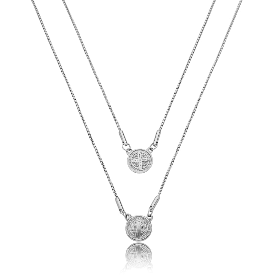 Colar corrente escapulário de aço inoxidável (antialérgico) com medalhas de São Bento.