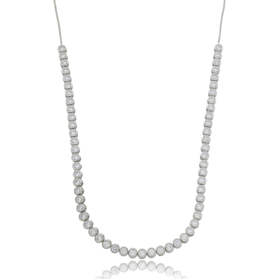 Colar ajustável banho de ródio com aplicação de cristais redondos na cor branco (cristal).