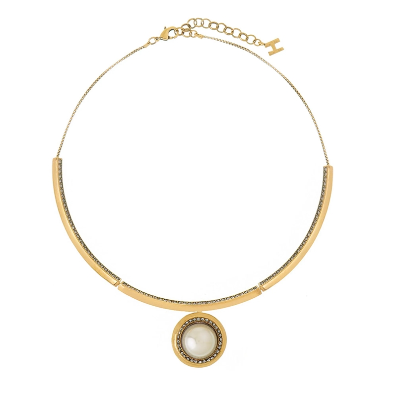 O Colar Curto Pérola Sirius foi produzido artesanalmente, aplicando as técnicas da joalheria, no banho Ouro Vintage, com cristais cravejados manualmente.