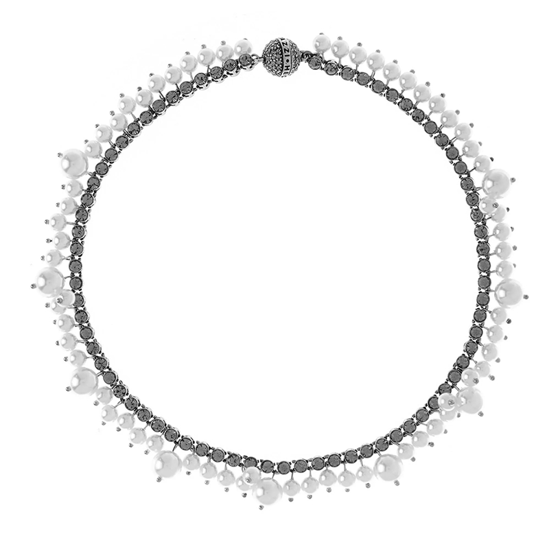 Colar banho prata boho com aplicação de pérolas e cristais.