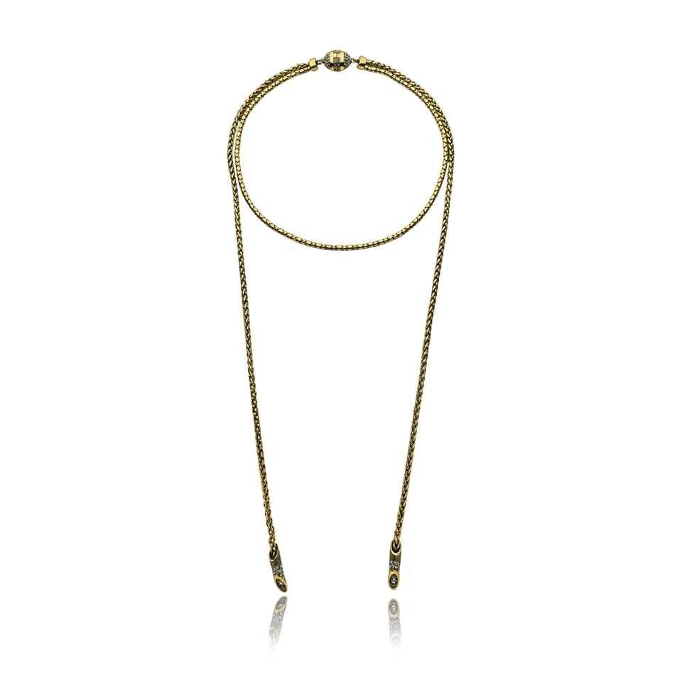 Colar curto banho ouro vintage com ponta dupla e aplicação de cristais tchecos black diamonds.