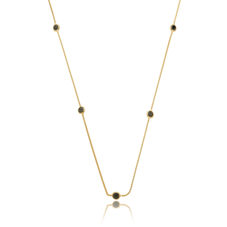 Colar corrente médio banho de ouro com aplicação de zircônias redondas na cor preta.