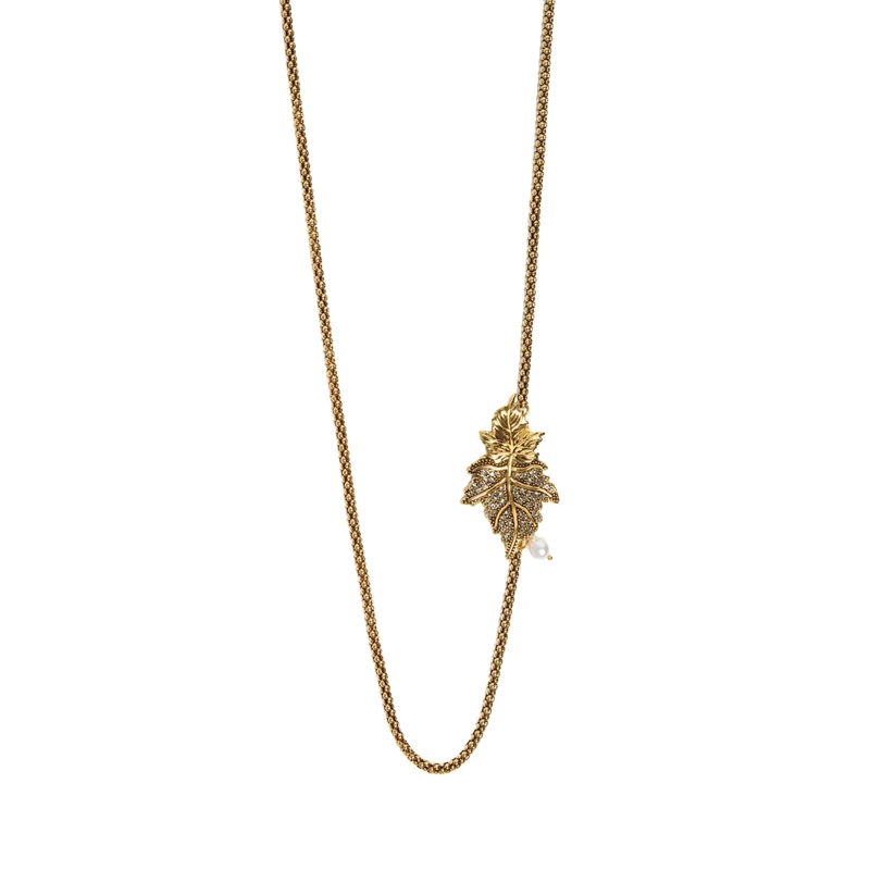 Medidas: Corrente com 70 cm de comprimento mais 3 cm de corrente extensora; folha: 5,5 cm de altura por 3,5 cm de largura.