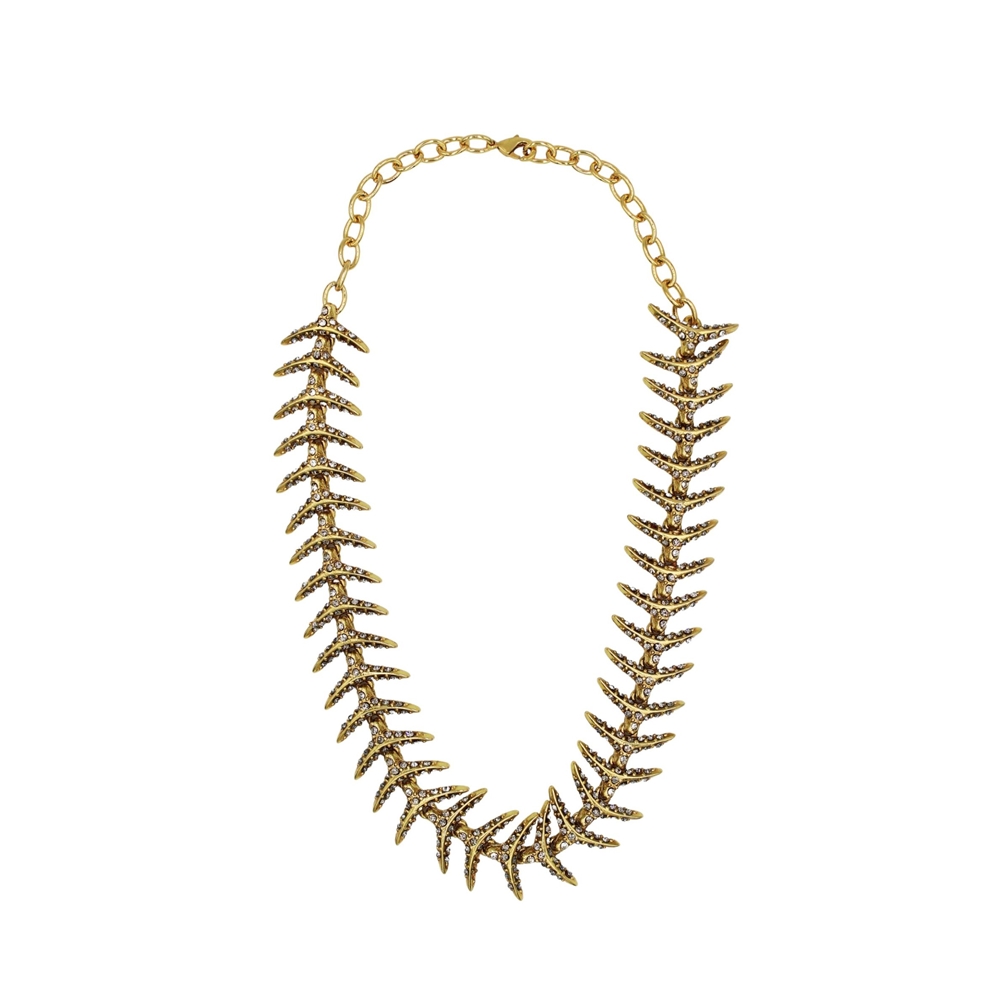 Com design articulado e banho em ouro vintage, o Colar Palone Design Espinha Strass traz um toque de sofisticação moderna. A peça combina estrutura e movimento, ideal para valorizar qualquer look com elegância e personalidade.