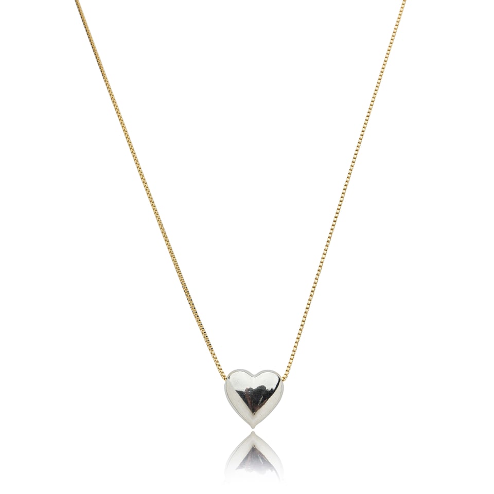 Colar corrente veneziana banho de ouro com pingente de coração no banho de ródio.
