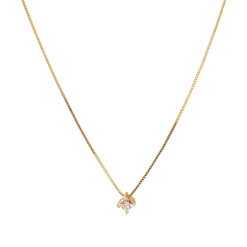 Delicado e elegante, o colar de corrente banhado a ouro é uma semijoia clássica que valoriza o brilho na medida certa. A peça apresenta um ponto de luz com Zircônia quadrada na cor branca (cristal), que reflete a luz com intensidade e sofisticação.