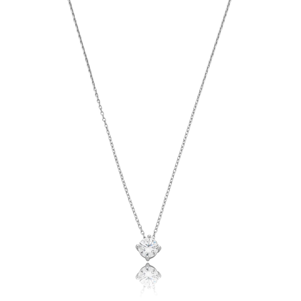 Colar corrente de prata 925 com banho de ródio com pingente de ponto de luz de zircônia na cor branco (cristal).