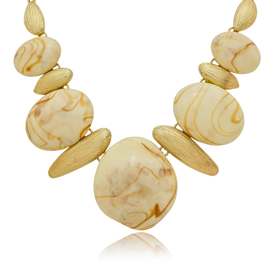 Colar banho de ouro com aplicação de resinas na cor bege marble.