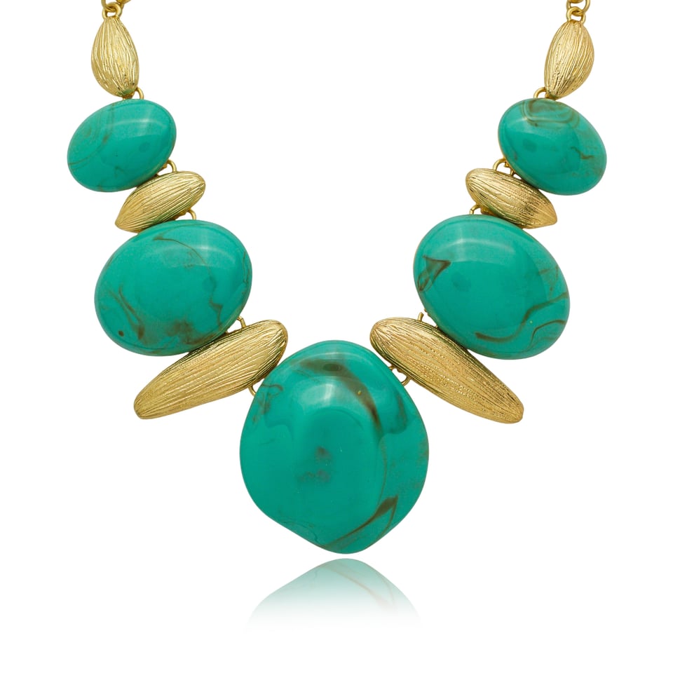 Colar banho de ouro com aplicação de resinas na cor turquesa.