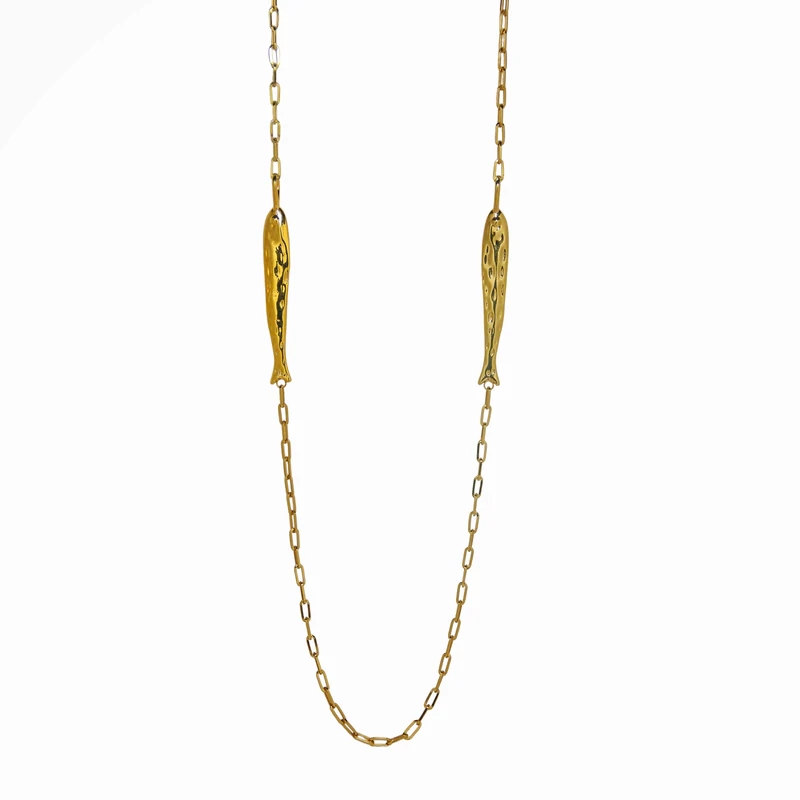 Este Colar Rosana Bernardes Longo Sardinhas combina delicadeza e originalidade, destacando-se pelo design único inspirado em pequenas sardinhas. Seu comprimento permite versatilidade no uso, valorizando qualquer look com um toque descontraído e elegante. Seja para complementar o visual do dia a dia ou para um evento especial, este acessório é perfeito para quem busca estilo autêntico e charme singular. Aposte neste colar e transforme seus outfits com personalidade e sofisticação.