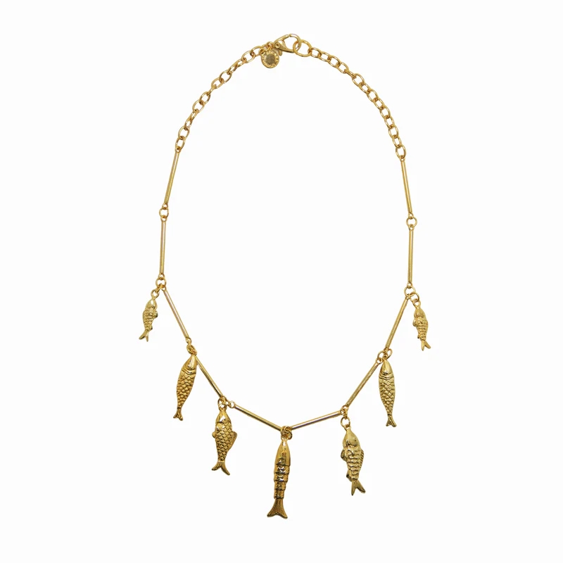 Medidas: 45 cm de comprimento mais 7 cm de corrente extensora para ajuste; peixe: 3,5 cm de altura por 7 mm de largura.