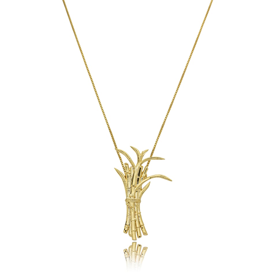 Colar banho de ouro com pingente de touceria de cana de açúcar.