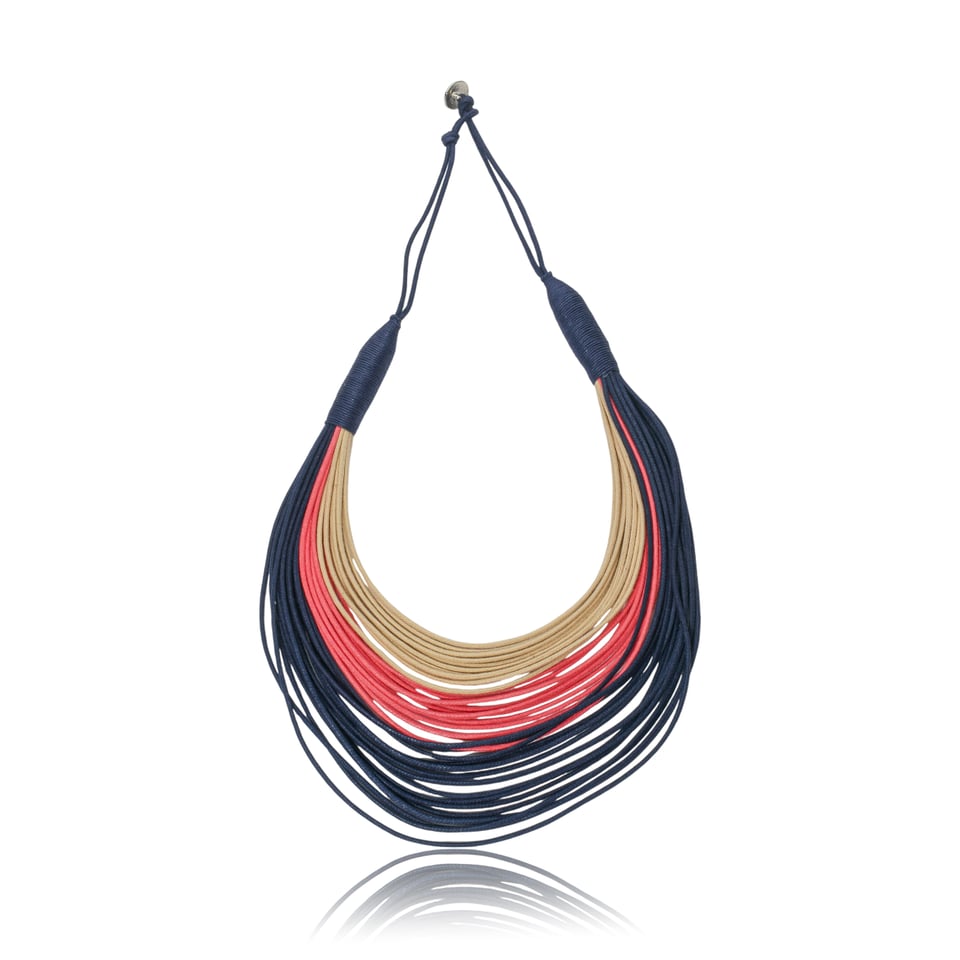 Colar médio produzido artesanalmente em fios 100% de algodão nas cores azul marinho, goiaba e bege,