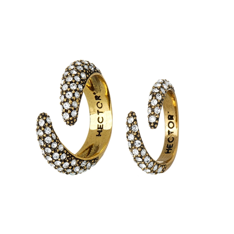 Anel banho de ouro vintage com aplicação de cristal na cor branco (cristal).